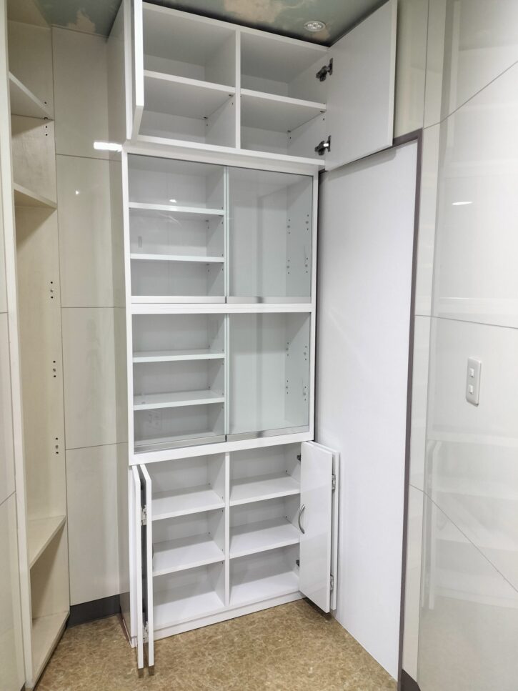 一軒一軒家の形、空間が違う様に、キャビネットもワイド・高さ・色・仕様が違って当たり前です。